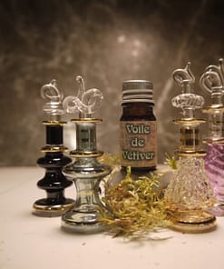 In “Vetiver Veil” perfume, I combine Vetiver with other fragrances, that would scent the typical Indian house in summer. The scent-scape contains the lingering fragrances of daily puja rituals made with Indian Frankincense, Camphor and Sandalwood. A touch of the scent of lemon grass from a cooling drink, freshly pressed out in front of the house, by the sugar cane walla. The scent of jasmine water and coriander from the evening meal.